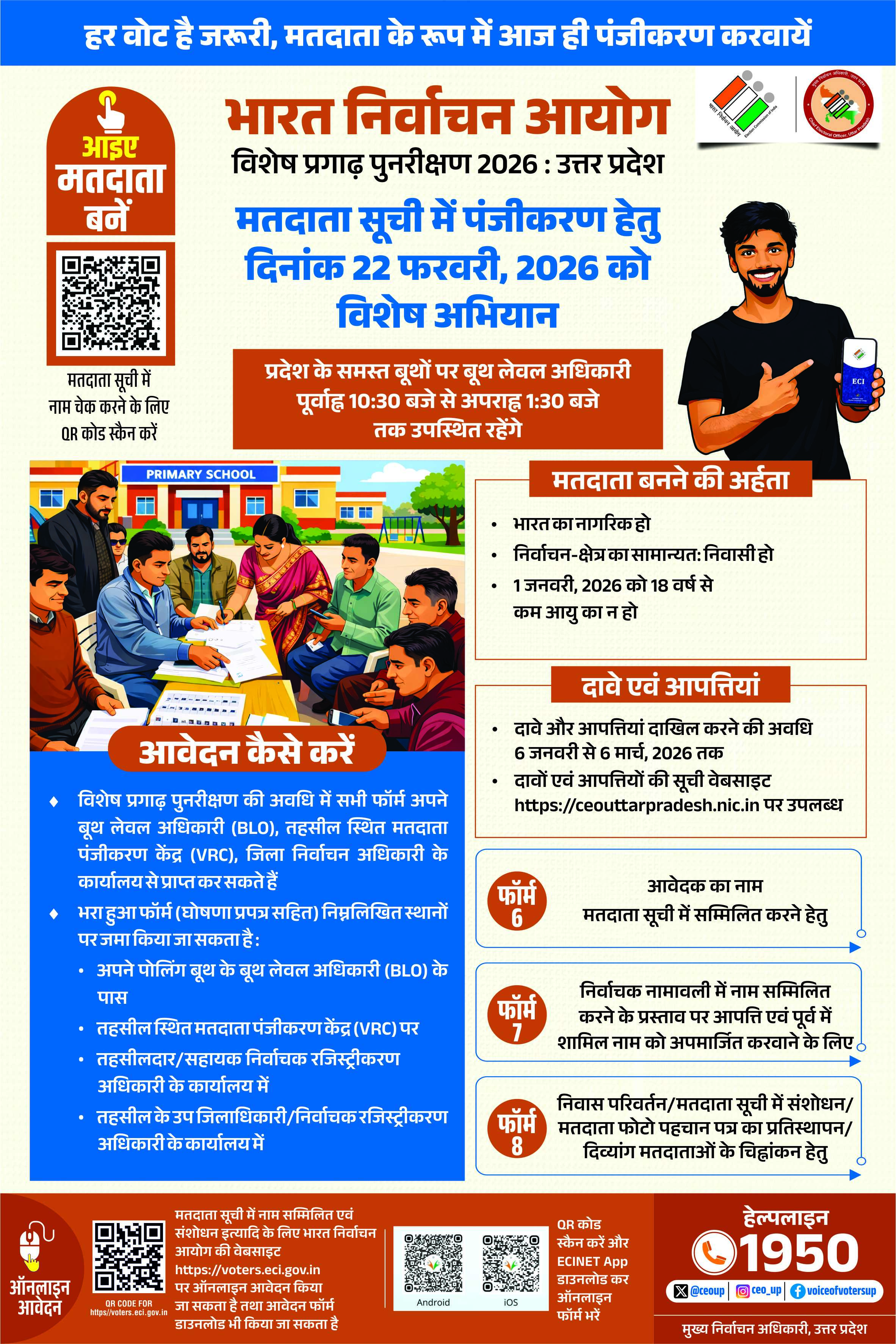 मतदाता सूची में पंजीकरण हेतु दिनांक 22 फरवरी 2026 को विशेष अभियान