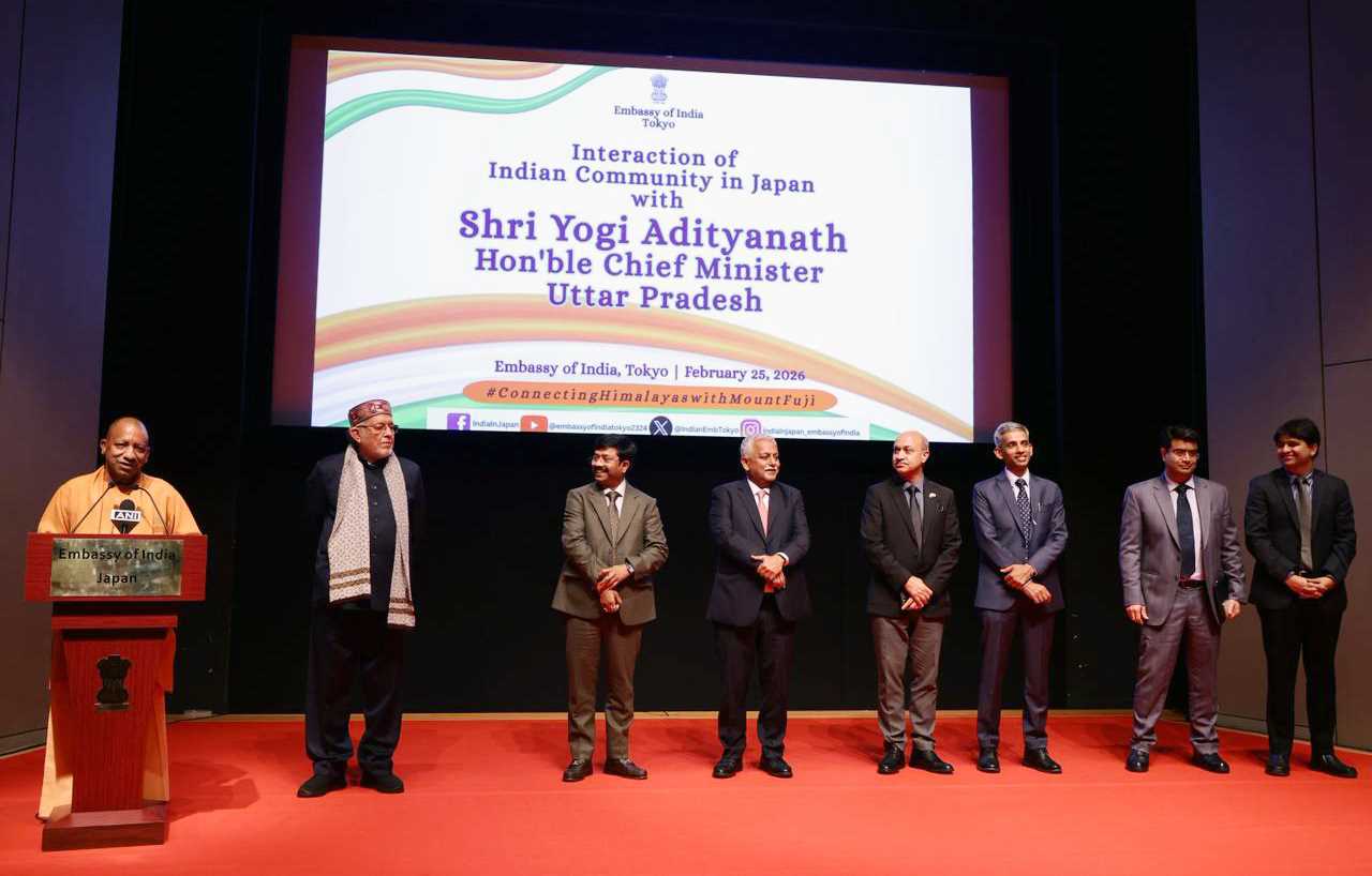 मा० मुख्यमंत्री योगी आदित्यनाथ जी 25 फरवरी, 2026 को जापान में आयोजित भारतीय मूल के लोगों के साथ ‘संवाद कार्यक्रम’ को सम्बोधित करते हुए।