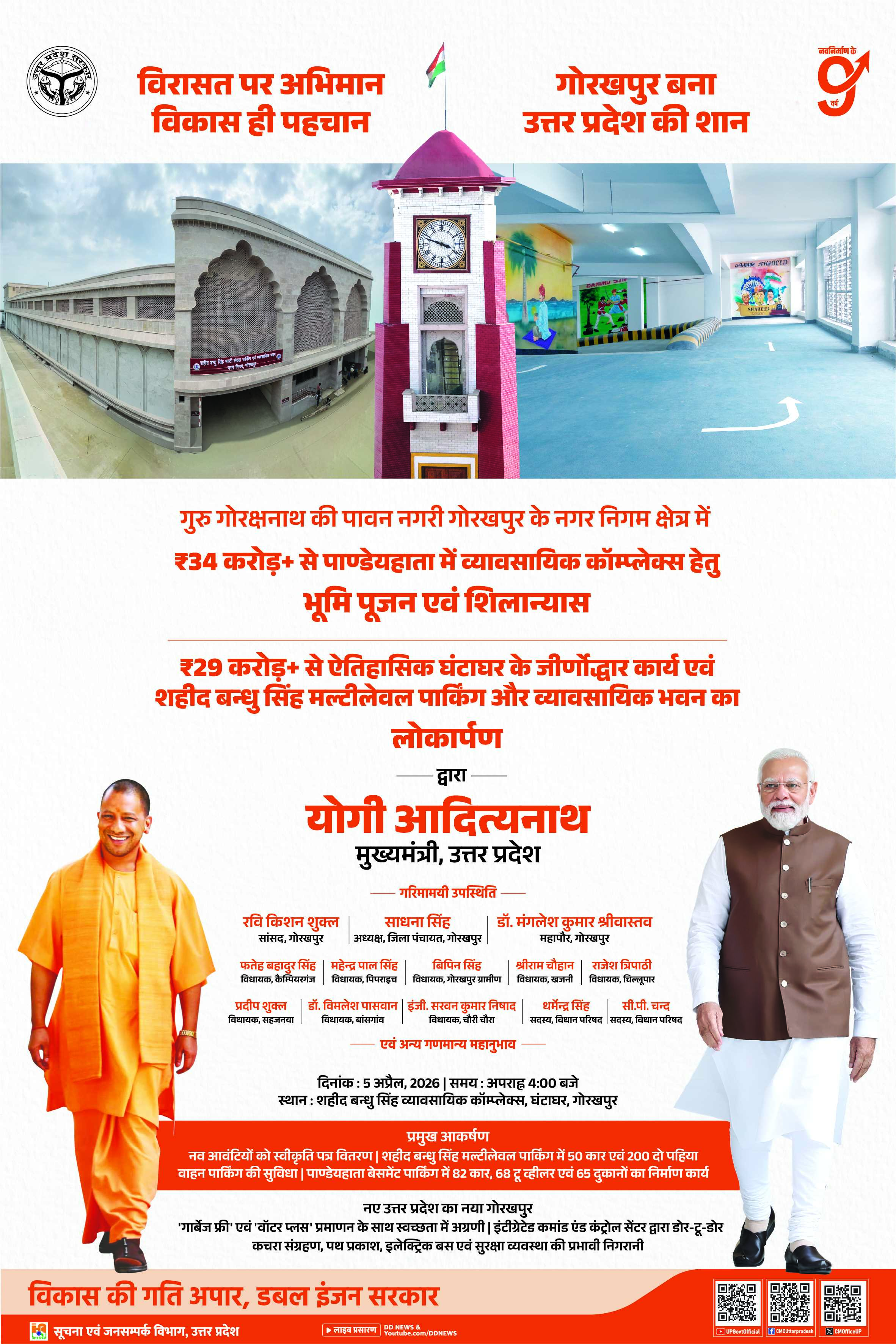 जनपद गोरखपुर रु0 34 करोड़ + पाण्डेयहाता में व्यावसायिक काम्प्लेक्स हेतु भूमि पूजन एवं शिलायान्स