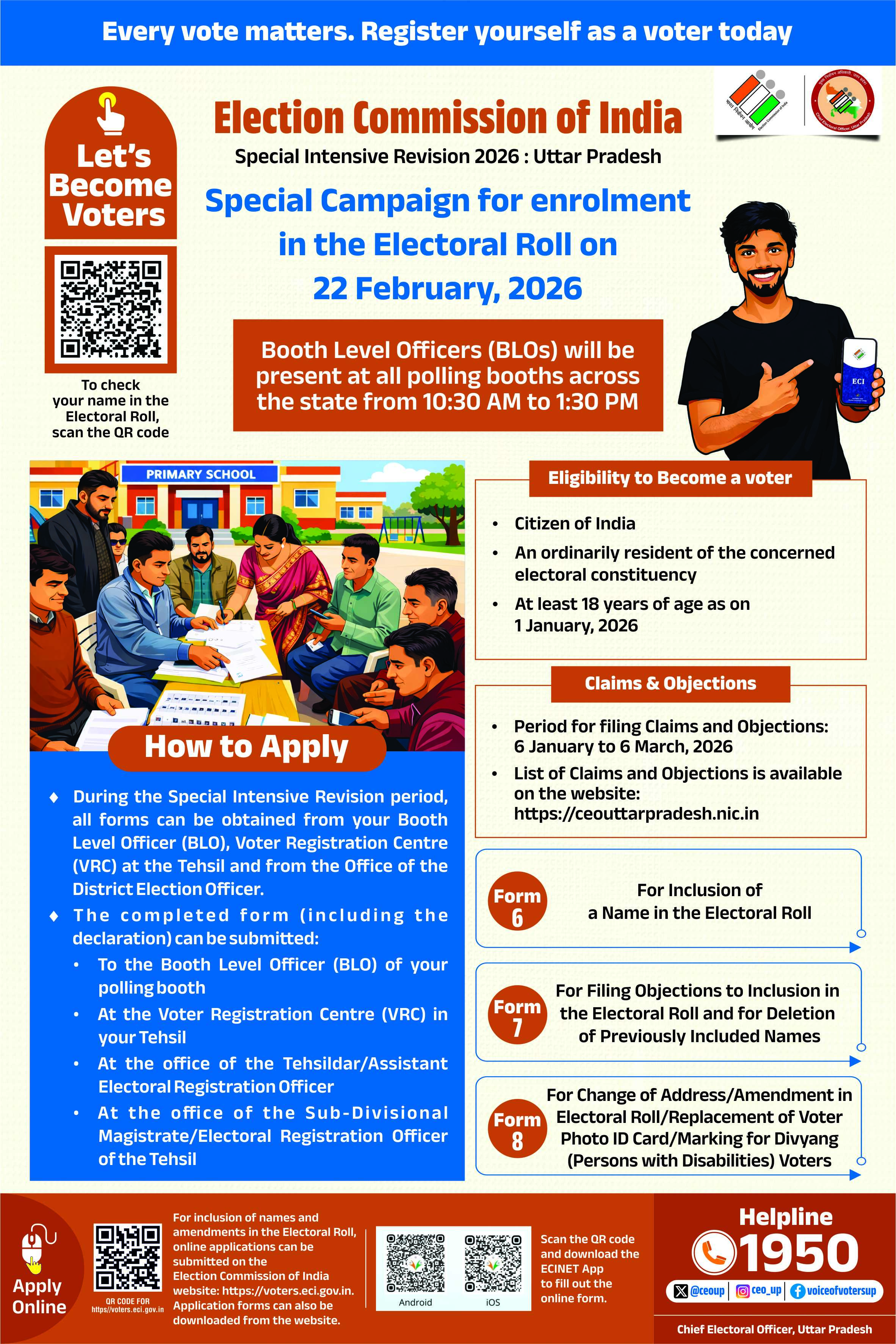 मतदाता सूची में पंजीकरण हेतु दिनांक 22 फरवरी 2026 को विशेष अभियान