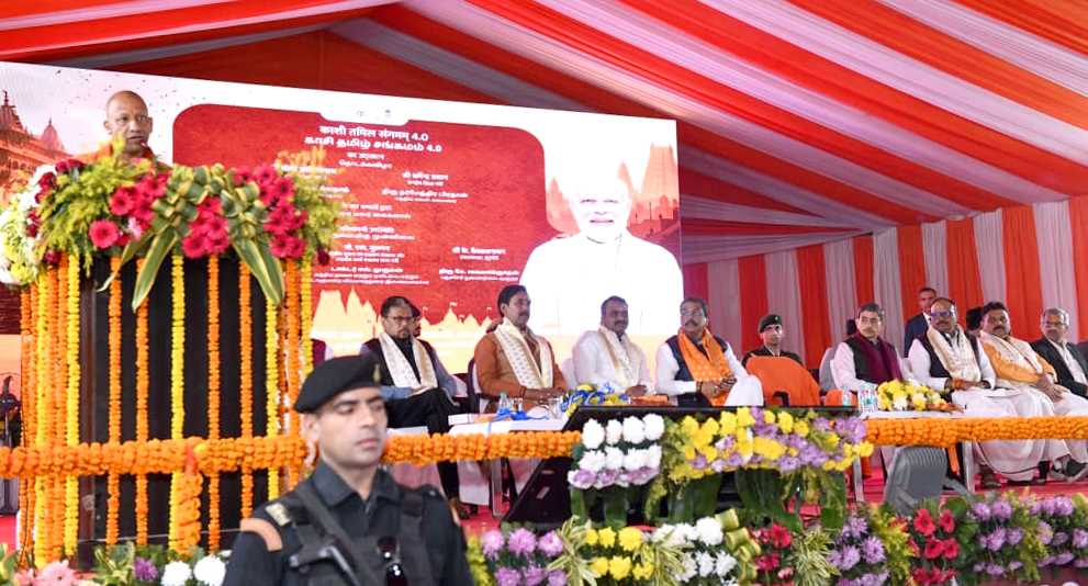 मा० मुख्यमंत्री योगी आदित्यनाथ जी 02 दिसंबर, 2025 को जनपद वाराणसी में ‘काशी तमिल संगमम् 4.0’ कार्यक्रम को सम्बोधित करते हुए।