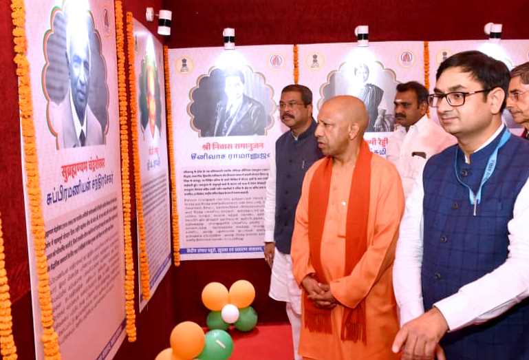 मा० मुख्यमंत्री योगी आदित्यनाथ जी तथा केन्द्रीय शिक्षा मंत्री श्री धर्मेन्द्र प्रधान जी 02 दिसंबर, 2025 को जनपद वाराणसी में ‘काशी तमिल संगमम् 4.0’ कार्यक्रम के अवसर पर प्रदर्शनी का अवलोकन करते हुए।