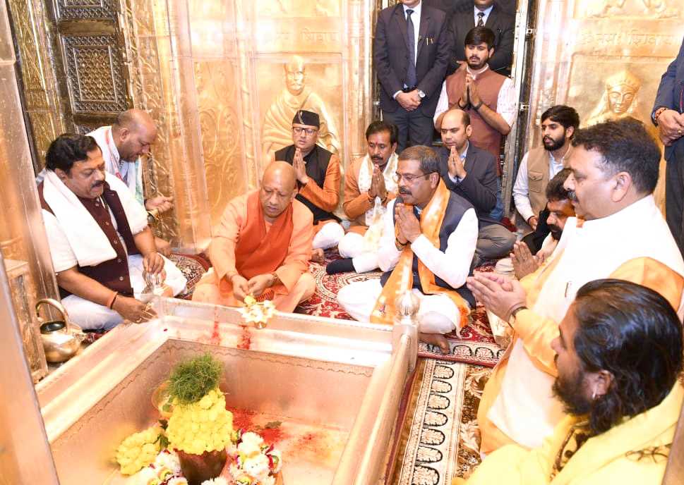 मा० मुख्यमंत्री योगी आदित्यनाथ जी तथा केन्द्रीय शिक्षा मंत्री श्री धर्मेन्द्र प्रधान जी 02 दिसंबर, 2025 को जनपद वाराणसी में श्री काशी विश्वनाथ मन्दिर में दर्शन-पूजन करते हुए।
