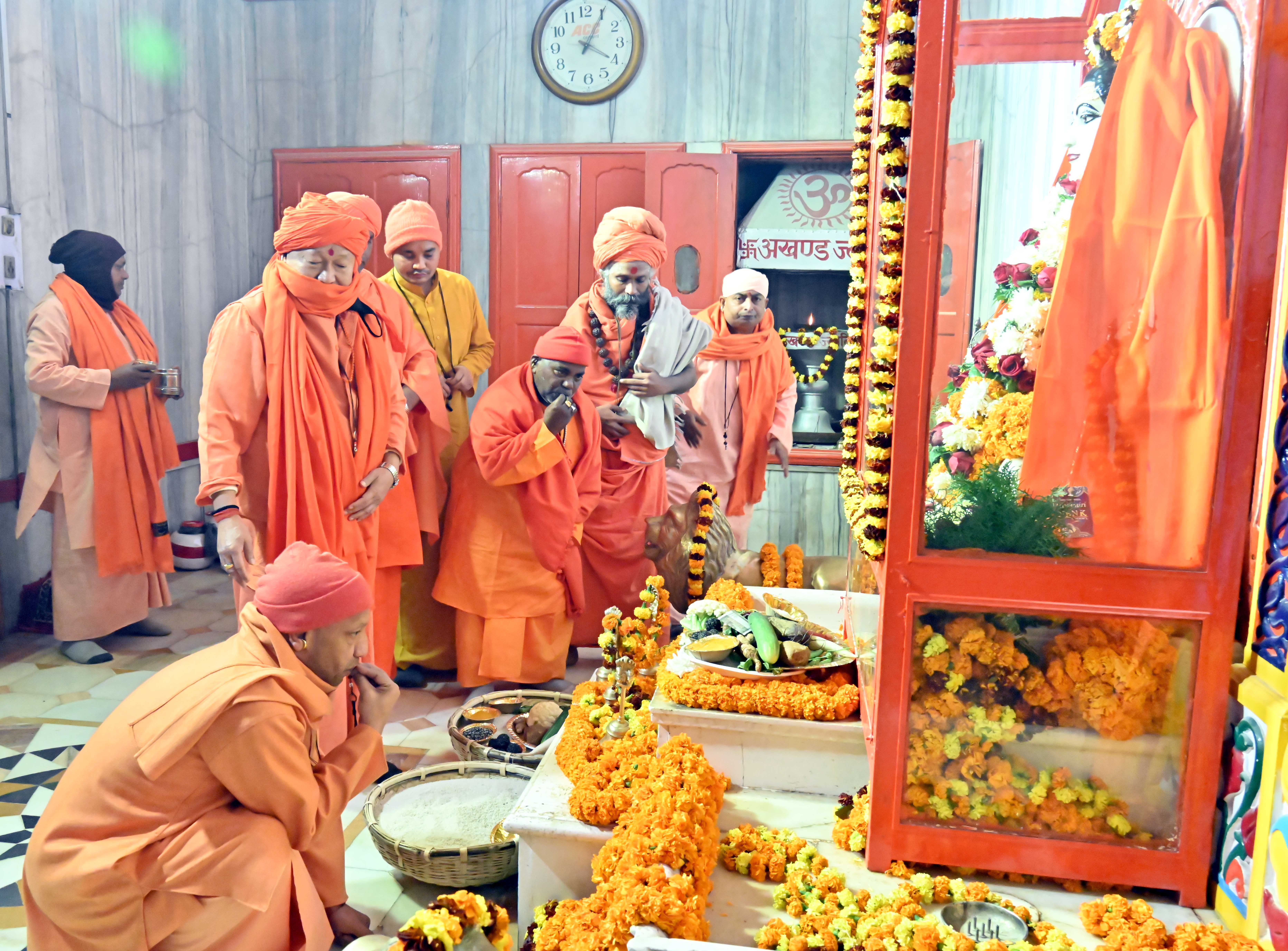 मा० मुख्यमंत्री योगी आदित्यनाथ जी 15 जनवरी, 2026 को श्री गोरखनाथ मन्दिर, गोरखपुर में मकर संक्रांति के अवसर पर खिचड़ी चढ़ाते हुए।